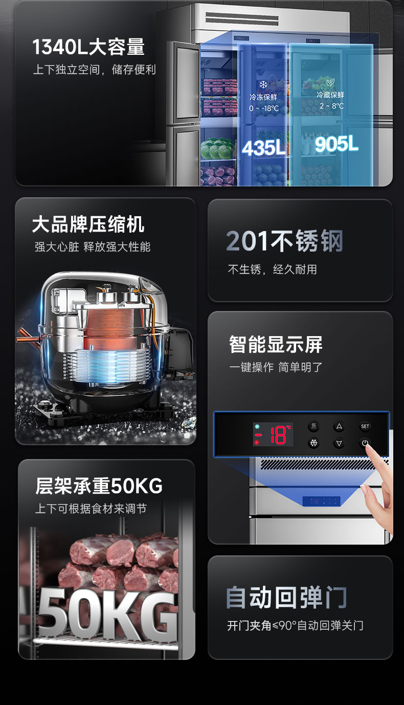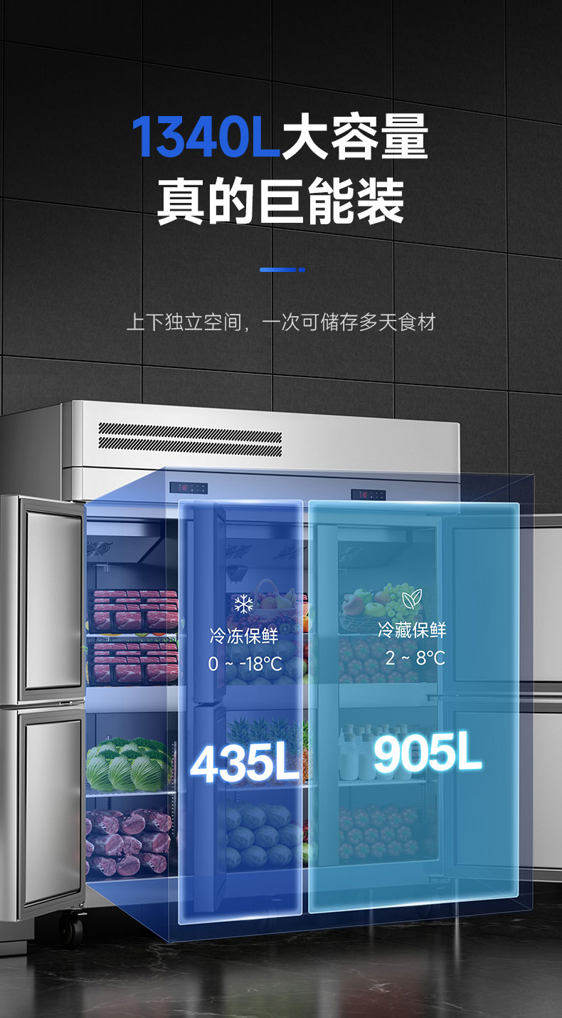 產品容積:冷凍435L+冷藏905L