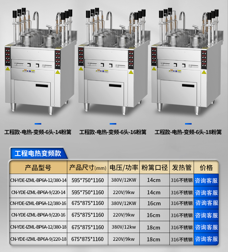 電熱6頭-方筐煮面爐-水餃爐