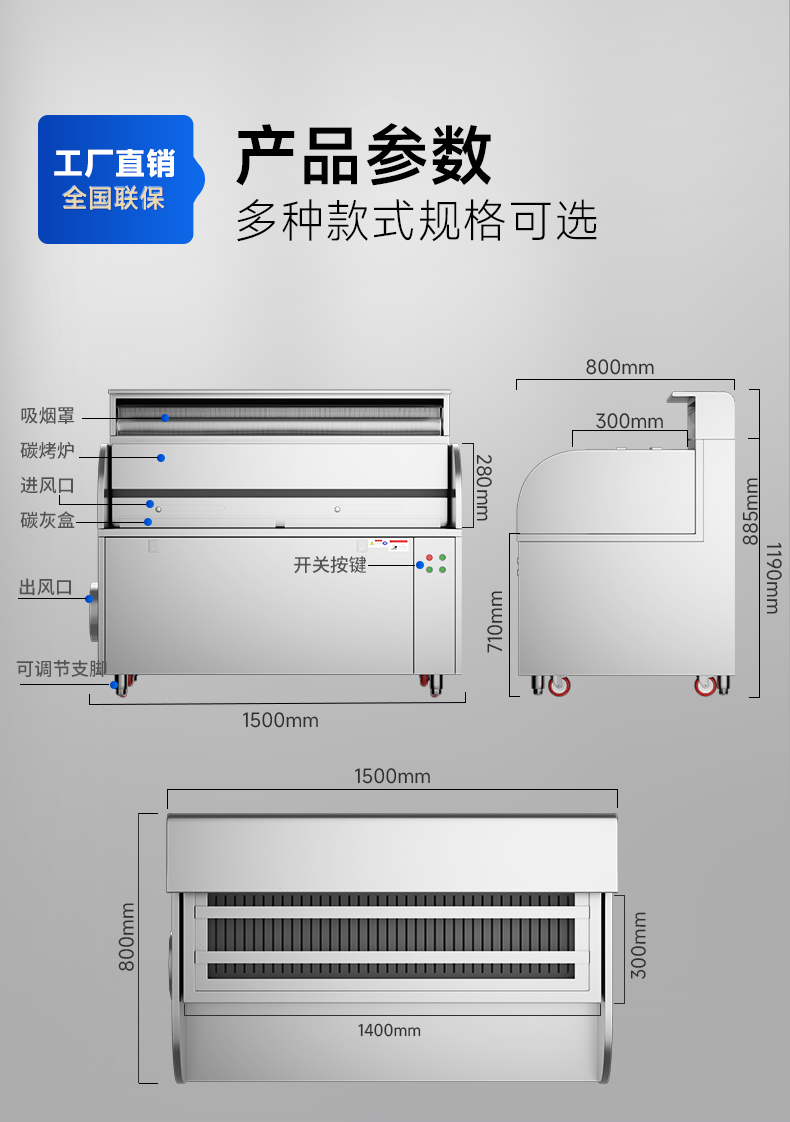 烤爐尺寸:1000*300*280mm