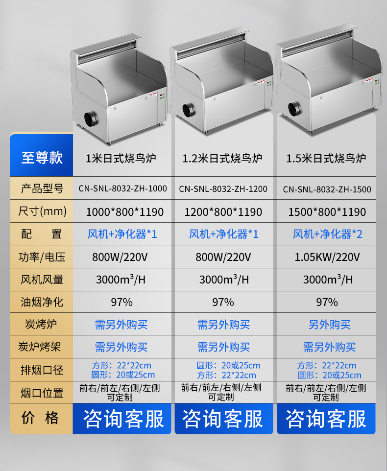配置:風機+凈化器*1+炭烤爐